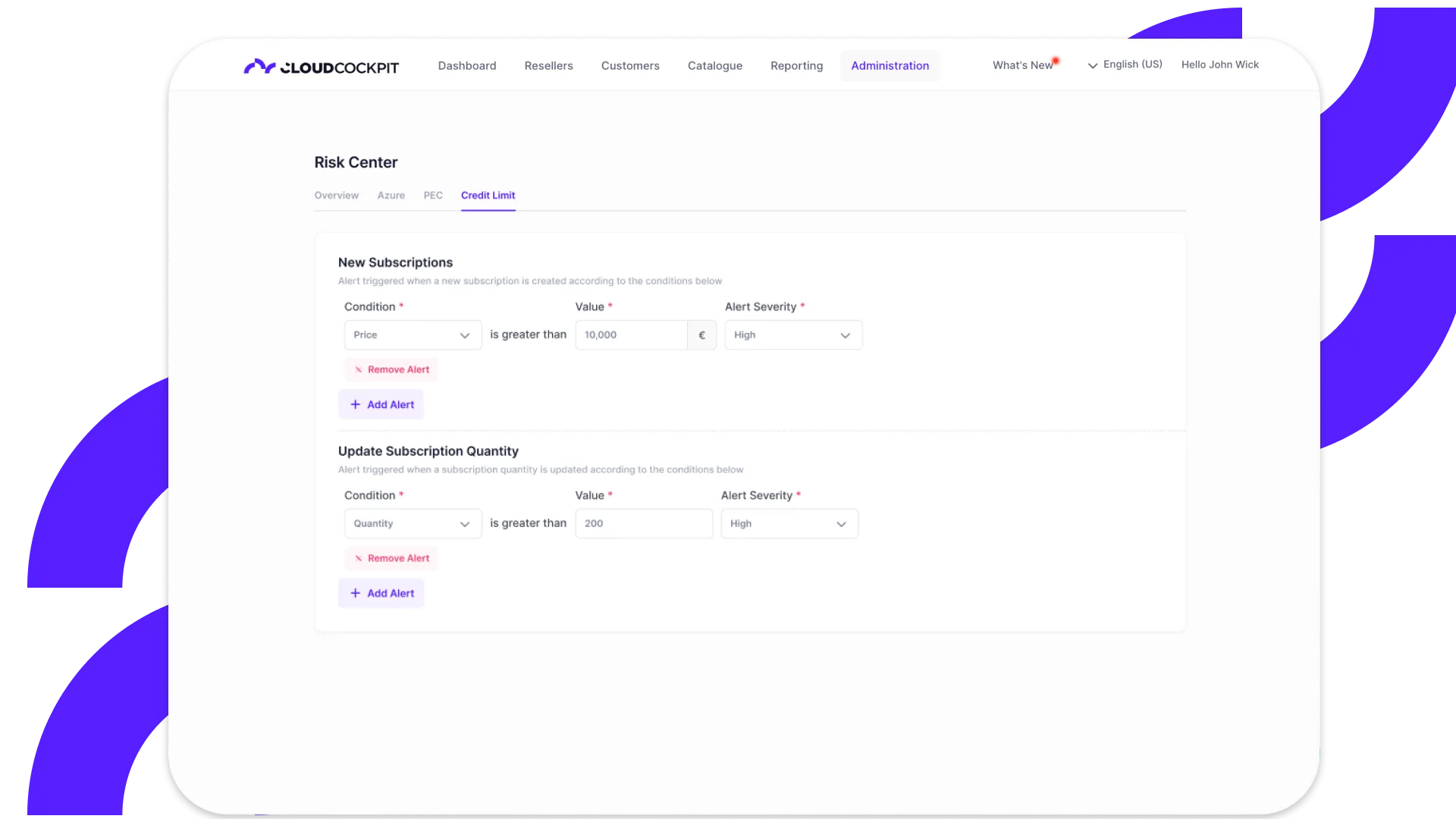 Establish specific credit limits for each partner—whether reseller or customer—directly within the CloudCockpit.