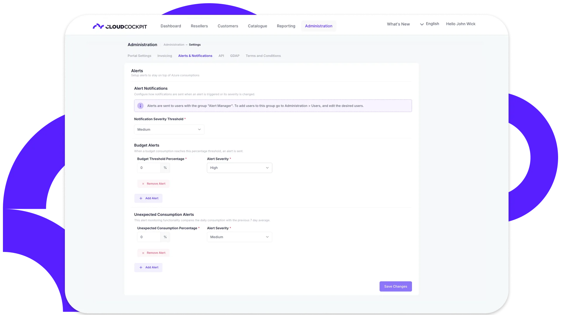 Configure alerts based on severity levels—low, medium, high, or critical—directly within the portal.